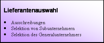 [Home] [Über uns] [Dienstleistungen] [Machbarkeitsstudien] [Marktrecherchen] [Concept Building] [Lastenhefte] [Budgetierung] [Lieferantenauswahl] [Vertragsmanagement] [Projektmanagement] [AGB's] [Kontakt] [Disclaimer] [Impressum]