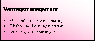 [Home] [Über uns] [Dienstleistungen] [Machbarkeitsstudien] [Marktrecherchen] [Concept Building] [Lastenhefte] [Budgetierung] [Lieferantenauswahl] [Vertragsmanagement] [Projektmanagement] [AGB's] [Kontakt] [Disclaimer] [Impressum]